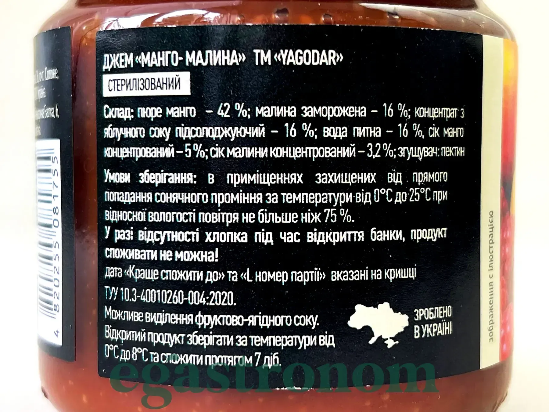 Джем манго-малина без цукру Ягодар Yagodar 210g 12шт/ящ