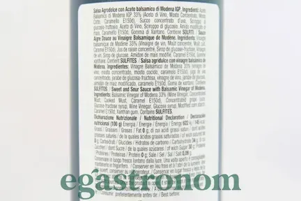 Бальзамічний крем - це приправа на основі тільки отриманий з допомогою холодного препарату. Вибір інгредієнтів скрупульозний і ретельний, щоб посилити класичний смак без насиченого смаку і аромату. Густа і композиція цього крему ідеально підходить для прикраси і ароматизації будь-якої страви. Кількість на палеті: 864 шт.