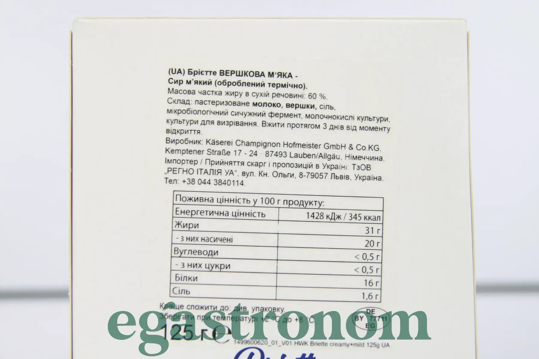 Сир камамбер вершковий та м`який Брієтте Briette creamy mild 125g 10шт/ящ