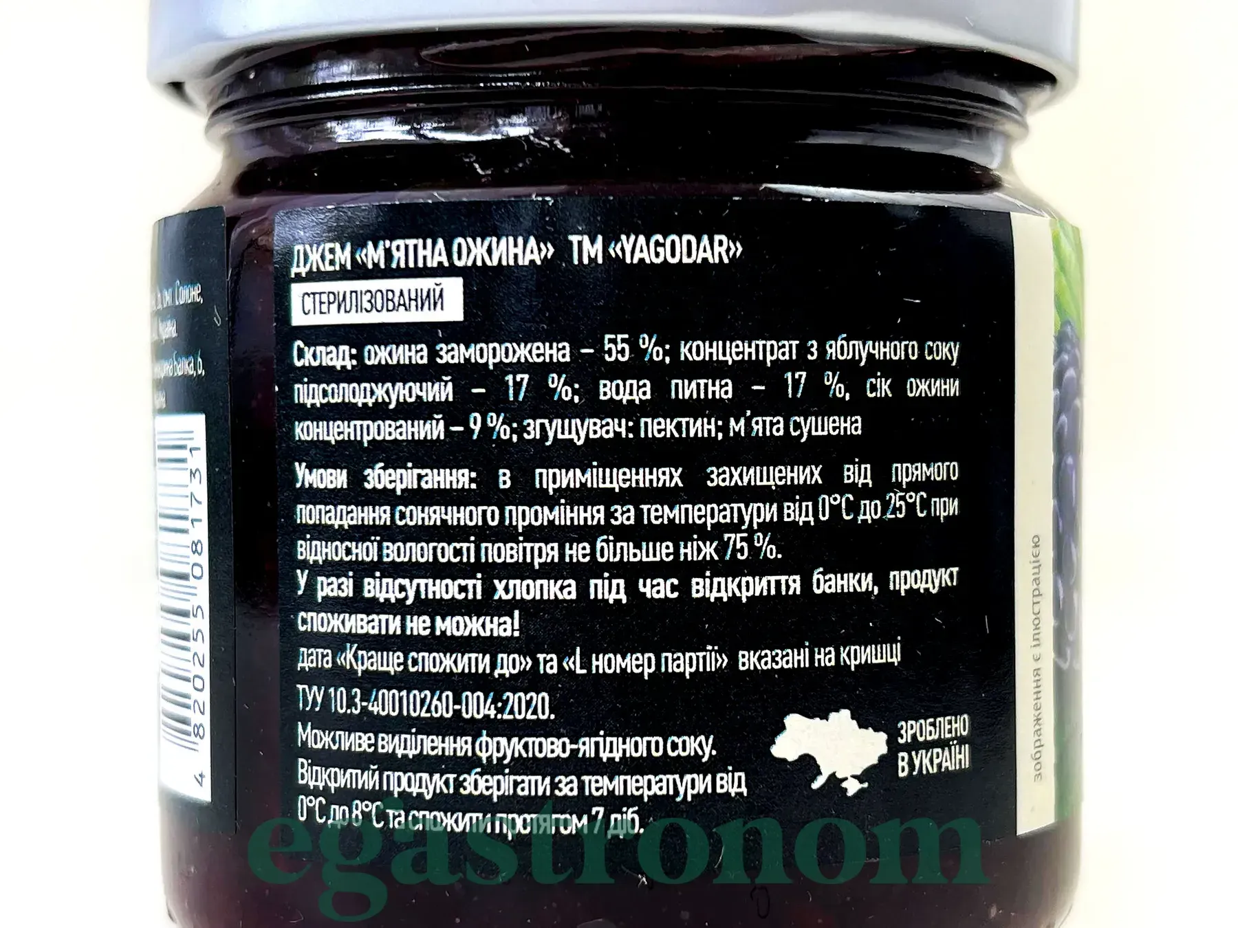 Джем м'ятна ожина без цукру Ягодар Yagodar 210g 12шт/ящ
