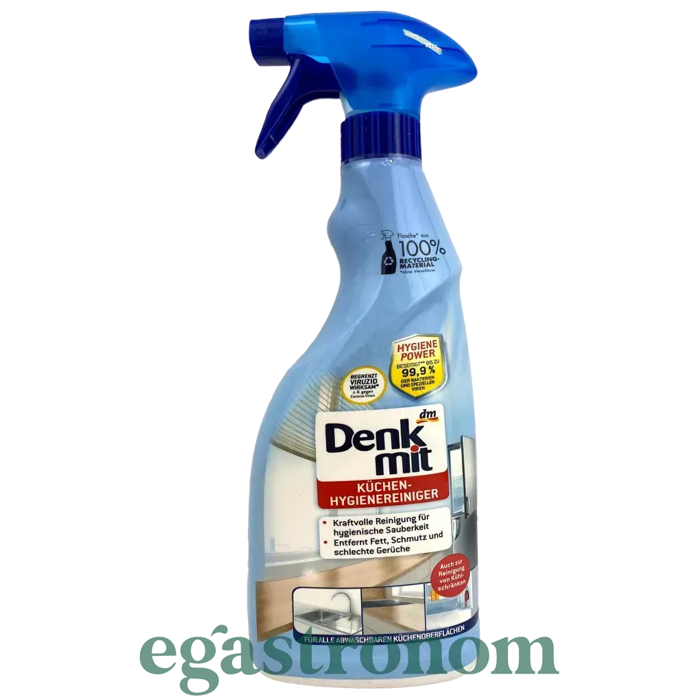 Засіб для чищення кухні Denkmit без зусиль видаляє жир і бруд з усіх кухонних поверхонь. Спеціальний рецепт також знищує до 99,9% бактерій. Засіб для гігієни кухні також ідеально підходить для чищення холодильників і забезпечує гігієнічну чистоту на всій кухні. ТОП запити Козячий сир ціна Жуйки купити Макарони ціна Лазур сир блакитний Подушечки для прання Ціна підгузників Ціна на борошно