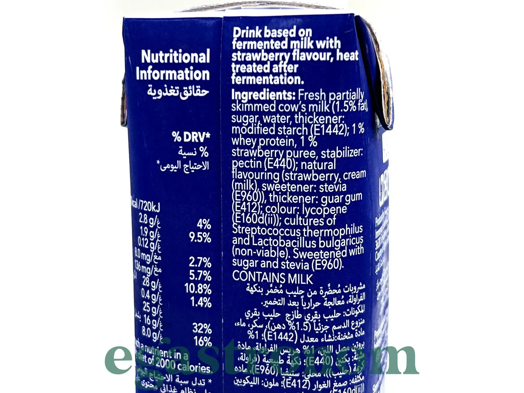 Смачний грецький йогуртовий напій із натуральним полуничним пюре. Має збалансовану солодкість і приємну кремову текстуру. Чудовий варіант для фруктового перекусу, містить 8 г білка в упаковці.