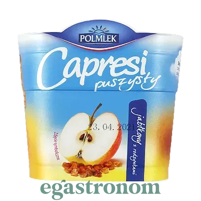 М'який вершковий сир з яблучним наповнювачем Polmlek Capresi виконаний з пастеризованих вершків, які були виготовлені з чистих молочних культур. Винятково мякий і делікатний сир. Плавлений вершковий сир Capresi виготовлений з ретельно відібраних інгредієнтів зі збереженням високих стандартів якості.