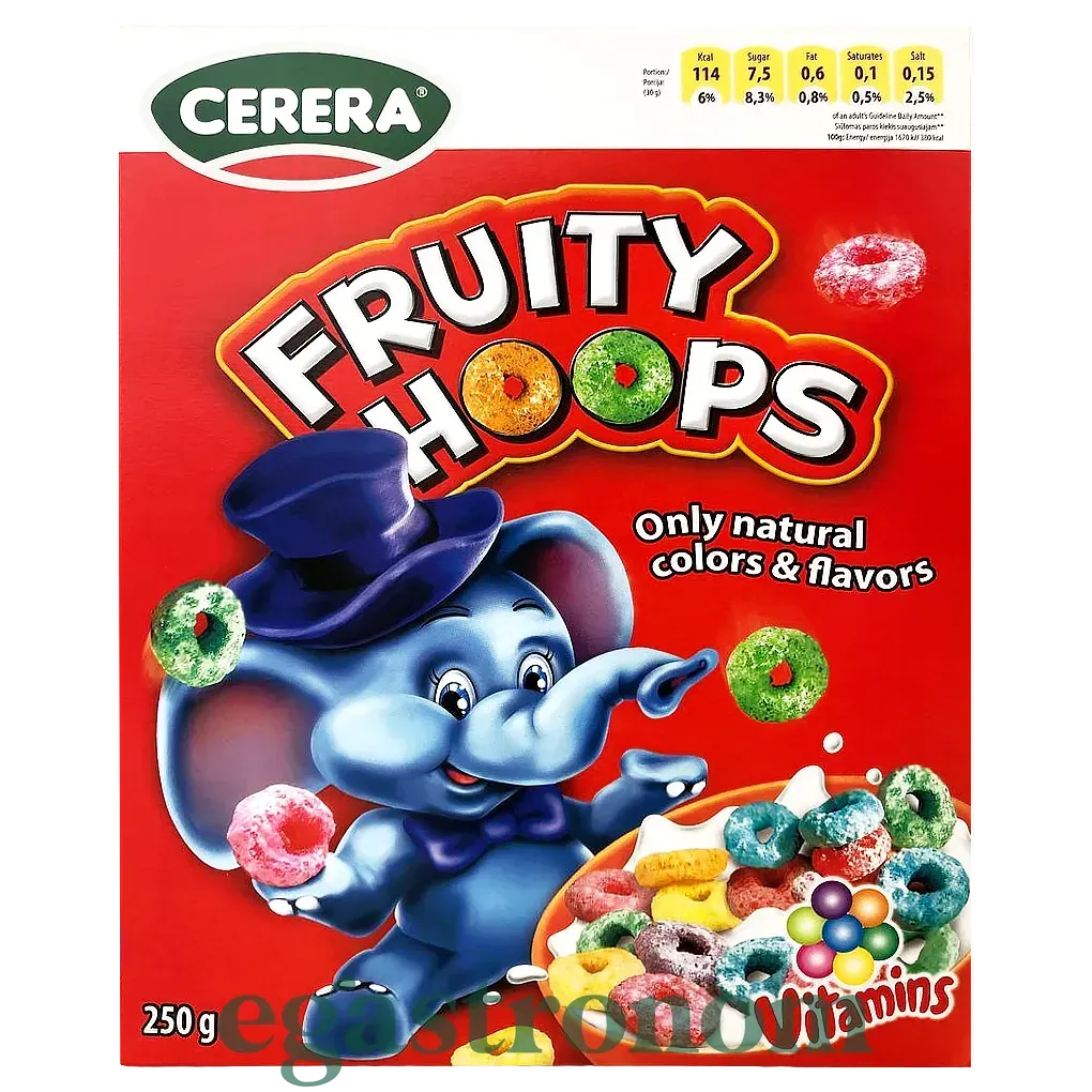 Сухий сніданок кольорові кільця Серера Cerera fruity hoops 250g 14шт/ящ