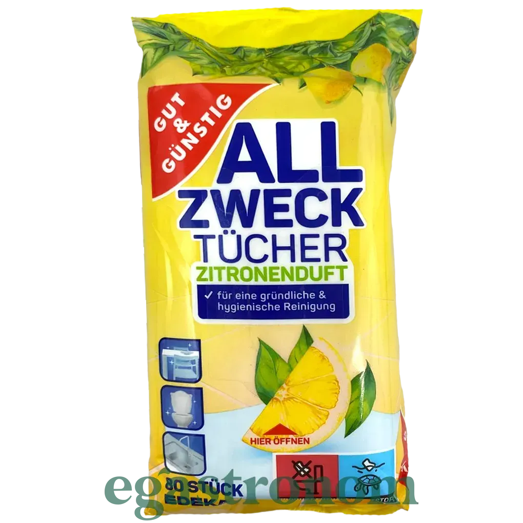 Серветки вологі для прибирання універсальні лимон Гут&Гунстіг Gut&Gunstig 80szt 6шт/ящ