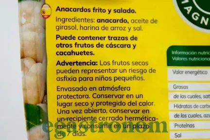 Горіх кеш 'ю – індійський горіх, поширений, зокрема в азіатській та індійській кухні. Горіхи ніжні та маслянисті до смаку. Широко використовуються в кулінарії, медицині та косметології. Містять велику кількість поживних речовин: білків, жирів, вуглеводів, крохмалю, харчових волокон, натуральних цукрів, багато вітамінів групи В, вітаміну РР та Е та мінералів. Найважливішою особливістю горішків є вміст Омега-3. Без глютену.