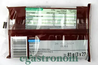 Грильяж з сезаму Бонтікі - кунжут у карамелі у вигляді пластинок. В упаковці знаходиться 3 пакетики по 27г, а в одному пакетику 3 шт. пластинок. Смакота незвичайна! У кунжутних насіння міститься багато рослинних жирів, серед яких лінолева, олеїнова, пальмітинова, міристінова, арахінова, стеаринова і лігноцеринова кислоти. Ці речовини є незамінними для організму людини та беруть участь у всіх життєво важливих процесах. Також насіння кунжуту має багатий вітамінно-мінеральний склад. Тут містяться вітаміни А, С, Е та групи В; мінерали - магній, цинк, фосфор, залізо, але найбільше кальцію. Крім того, в насінні присутні органічні кислоти: бета-ситостерин, фітин і лецитин.