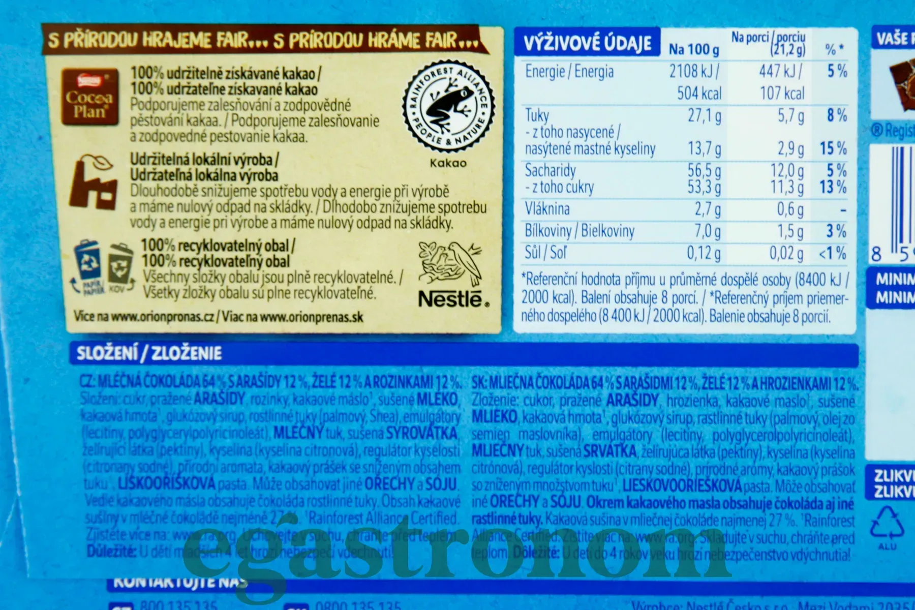 Шоколад Studentska дуже смачний шоколад з Чехії. Виробляє шоколад відома кондитерська компанія Orion. Шоколад «Студентська» виготовляють з 1975 суворо дотримуються оригінального рецепту. Ніжний шоколад з'єднують з різними начинками, існує багато варіантів шоколадок з самими різними і незвичайними начинками від чеського виробника. Кондитерський бренд Orion популярний у всій Європі, під ним виробляється величезна кількість різних цукерок та інших солодощів. Чеський справжній шоколад, відмінної європейської якості.