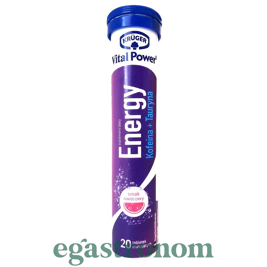 З кожним днем збільшується популярність на шипучі водорозчинні полівітаміни. Прекрасним зразком вважаються вітаміни Kruger. Вітаміни розчинні в таблетках компанії Kruger (Кругер) з'явилася зовсім недавно, але вже змогла завоювати світову популярність. Тепер, щоб отримувати добову норму потрібних вітамінів, Вам не потрібно їсти різні таблетки, які потім дуже довго засвоюються. Додавши одну таблетку у склянку з водою, вона швидко розчиниться у воді і напій буде готовий до вживання. Також потрібно відзначити, що вітаміни мають різні смаки (лимонний, апельсиновий та інші). Kruger Energy Енерджі Містить таурин, кофеїн і L-карнітин, щоб дати вам щоденну дозу енергії; 1 таблетка містить 100% виконання рекомендованої добової потреби вітаміну В і вітамін С, і 30% магнію; Продукт призначений для дорослих під час напруженої розумової і фізичної навантаженні; Енергетичні добавки щоденний раціон вітаміни групи В (ніацин, пантотенова кислота, Віт. B6, віт. B12), вітамін С і магній. Склад: регулятори кислотності: лимонна к ТОП запити Соєвий соус купити Магазин сиру Засіб для миття посуди Ціна олії Гігієнічні засоби Купити твердий сир Засоби для волосся
