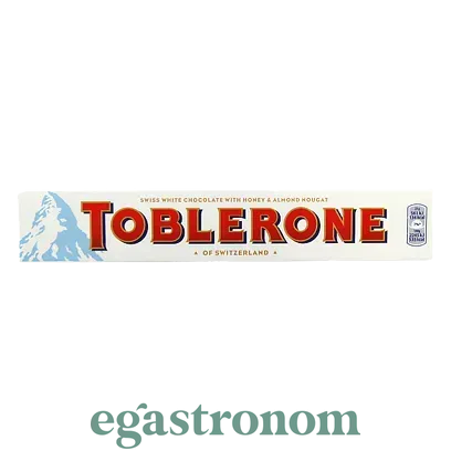 Шоколад Toblerone White Chocolate Honey & Almond Nougat - ексклюзивний швейцарський шоколад відомий у всьому світі завдяки запатентованій трикутній формі, незмінного швейцарської якості та характерному поєднанню справжнього швейцарського шоколаду, меду і мигдалевого начинки. Вперше шоколад почав продаватися в Швейцарії в 1908 році і дуже швидко став символом цієї дивної країни.