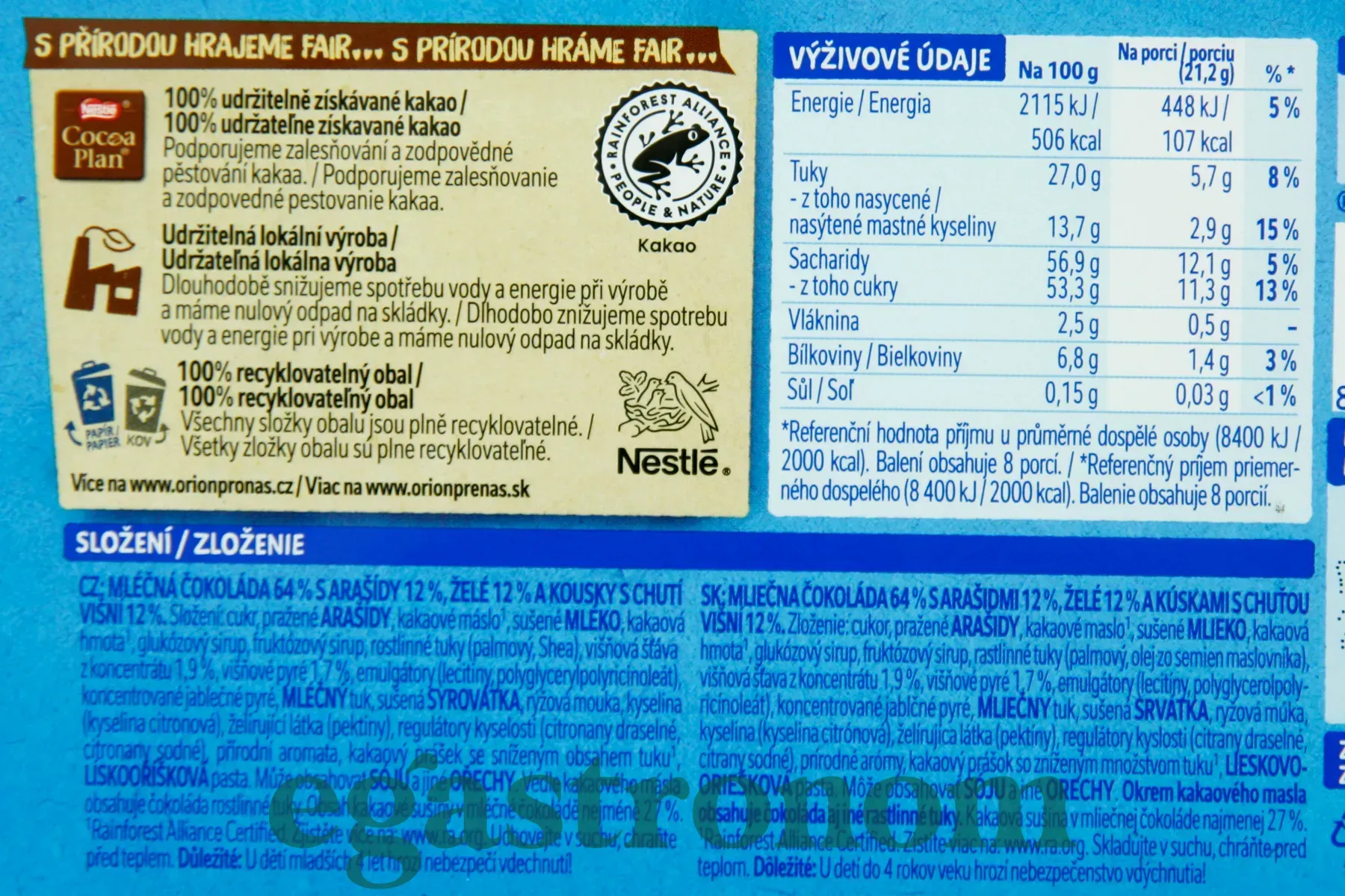 Смачний шоколад це кращий спосіб підняти собі настрій на цілий день! Саме таким шоколадом є STUDENTSKA від відомого виробника Orion! Вишня (молочний шоколад в поєднанні з арахісом, желе і шматочками вишні) Ніжний молочний шоколад прекрасно поєднується з різноманітною начинкою, якої ну дуууже багато в упаковці, а вага шоколадки - цілих 170 грам.