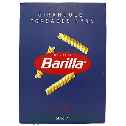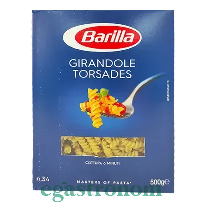Макарони Barilla No34 Girandole Torsades вважаються родичами пасти фузіллі, відрізняються меншим розміром. Паста проводиться у вигляді щільних спіралей. Завдяки своїй формі і текстурі макарони прекрасно утримують соуси на своїй поверхні, дозволяючи їм розкривати палітру своїх смаків. Назва пасти виникло завдяки тому, що вона була схожа на дитячу іграшку, яка представляє собою різнобарвну вертушку. Ця неперевершена паста прекрасно поєднується як з густими насиченими, так і більш простими і легкими соусами. ТОП запити Порошок для чищення посуду Ціни на побутову хімію Оливка і маслина Сири тверді Сири з козячого молока Купити порошок пральний Продукти з європи