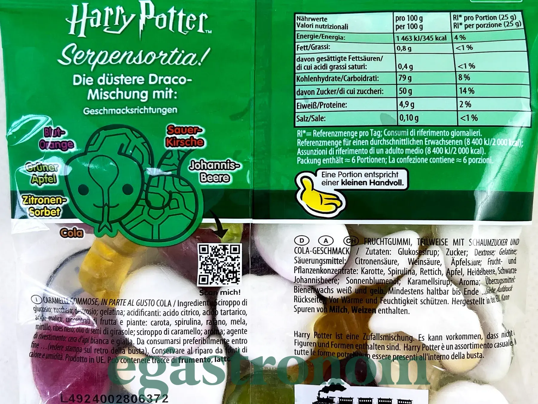 Желейні цукерки Haribo Harry Potter — це магічна солодка колекція, натхненна світом Гаррі Поттера. У кожній упаковці — кольорові фігурки у формі чарівних символів, героїв та предметів із Гоґвортсу. Смаки поєднують знайомі й фантазійні нотки: карамель, яблуко, журавлину, гарбузовий пряник, вишню та навіть колу