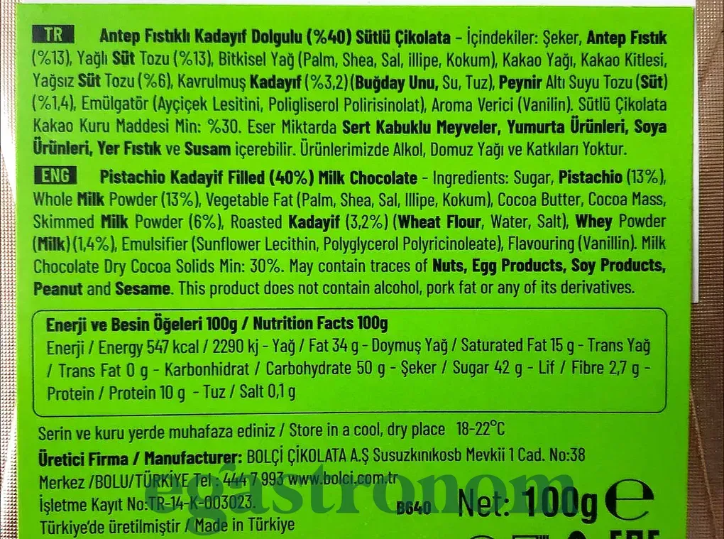 Розкішний шоколад, який поєднує в собі насичений смак шоколаду та хрусткі шматочки фісташок. Виготовлений за традиційними рецептами, цей шоколад дарує неповторне задоволення від кожного шматочка. Дубайський шоколад з фісташкою ідеально підходить для частування або як подарунок, адже він втілює в собі екзотичний смак та аромат. Кількість на палеті: 6600 шт.
