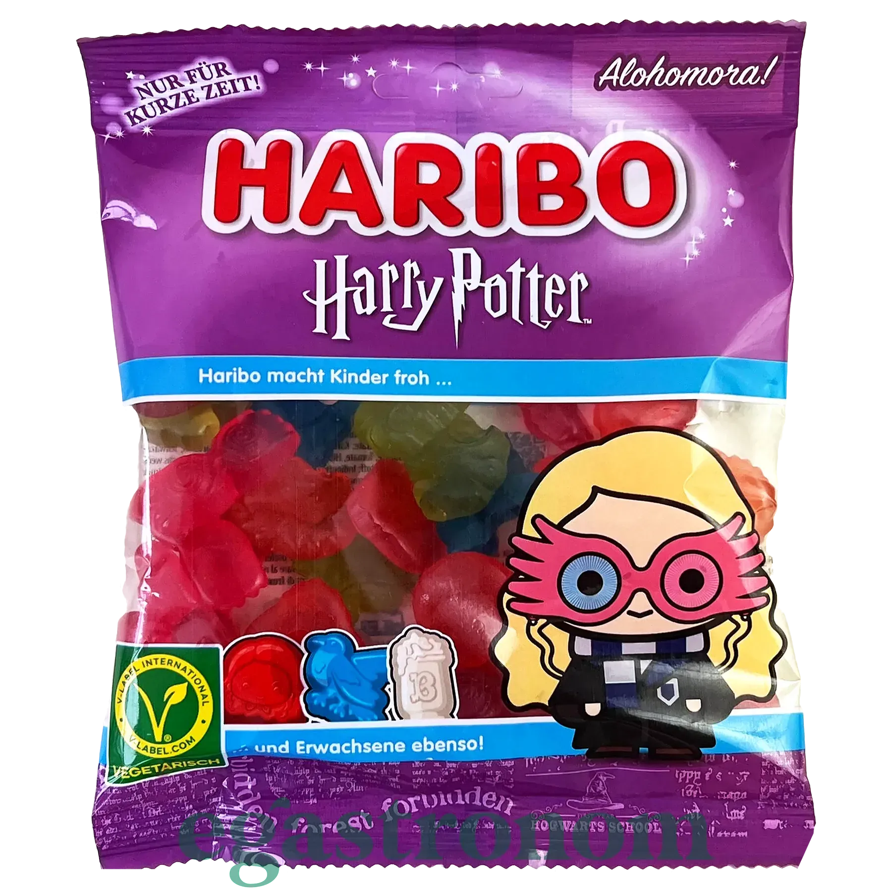 Желейні цукерки Haribo Harry Potter — це магічна солодка колекція, натхненна світом Гаррі Поттера. У кожній упаковці — кольорові фігурки у формі чарівних символів, героїв та предметів із Гоґвортсу. Смаки поєднують знайомі й фантазійні нотки: карамель, яблуко, журавлину, гарбузовий пряник, вишню та навіть колу!