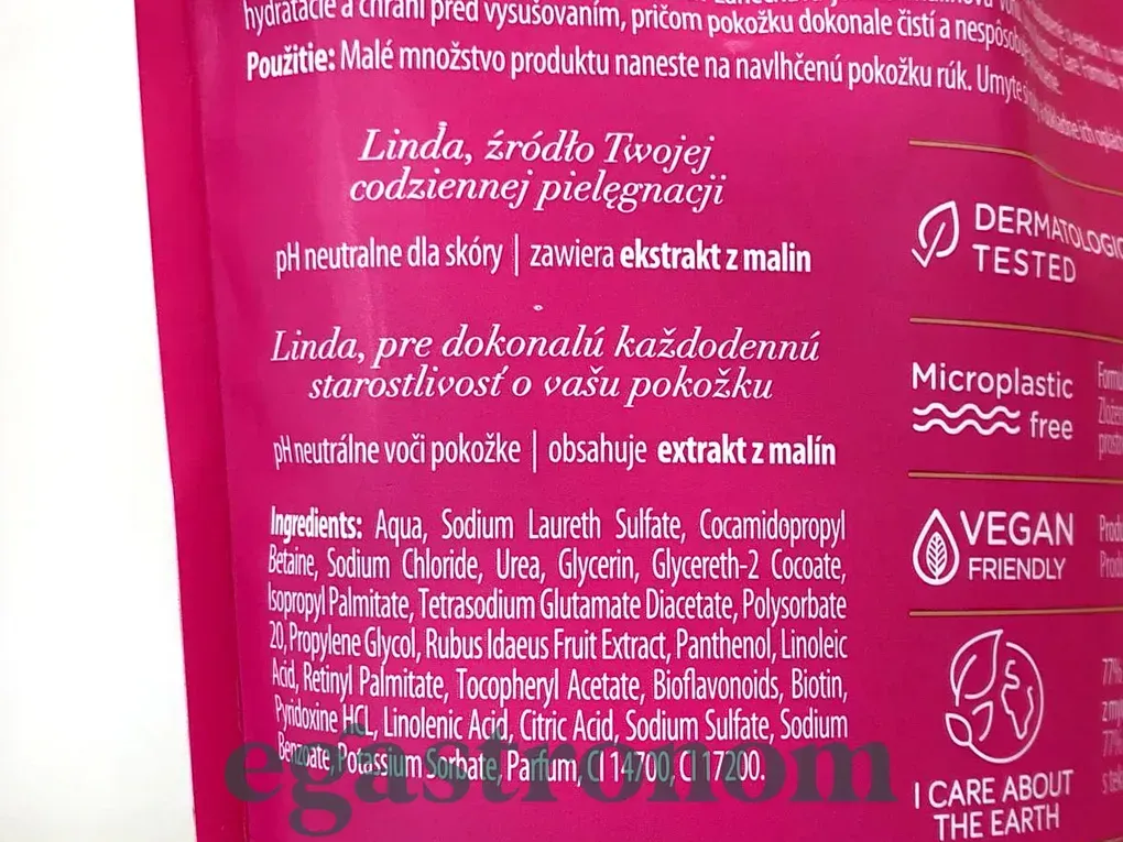 Рідке крем-мило для рук і тіла Linda, збагачене натуральними екстрактами, забезпечує ідеальне очищення, глибоке зволоження і живлення шкіри. М'яка формула піклується про шкіру, роблячи її гладкою і ніжною.