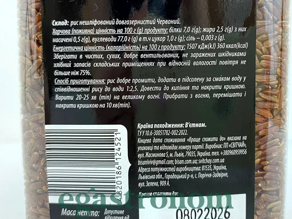 Рис червоний Бісан Bisan red 800g 6шт/ящ. Зображення №2