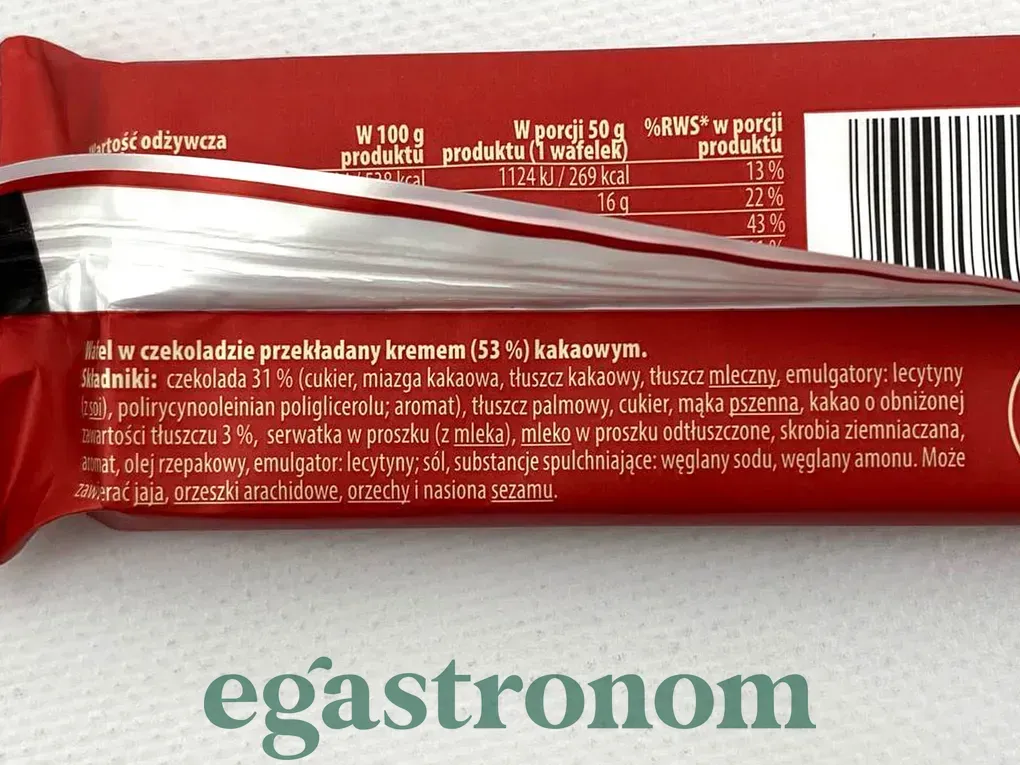 Вафелька Estella deserowa - це десертна вафелька, яка має ніжний смак. Її вага становить 50 грам, що робить її ідеальним перекусом для вживання в будь-який час дня. Ця вафелька має текстуру крихкої пластинки, зі смаком ніжного крему, який легко розсипається в роті, додаючи приємний смак.