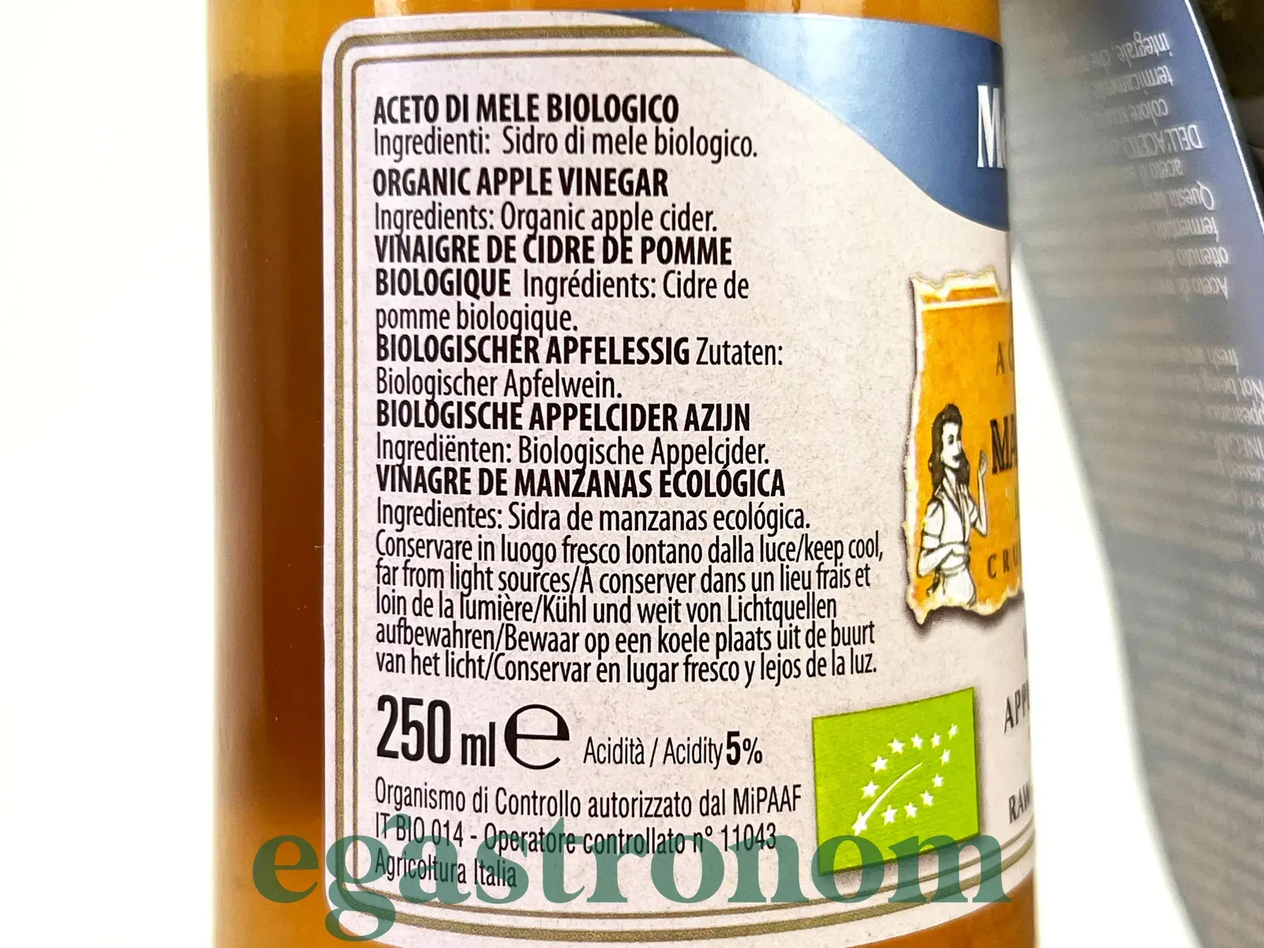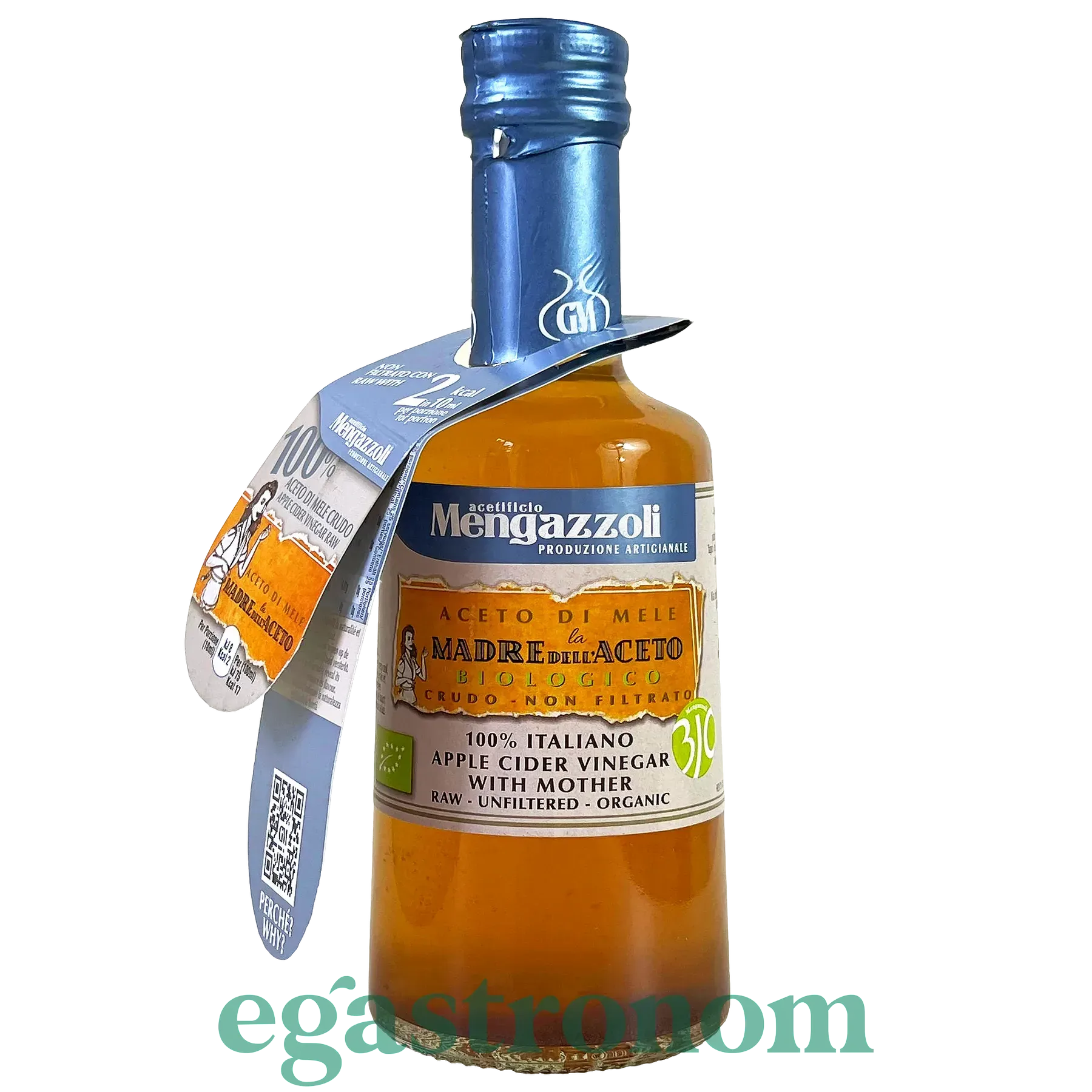 Органічний нефільтрований яблучний оцет з «матір’ю оцту», виготовлений з італійських яблук. Натуральний продукт із насиченим ароматом, підходить для салатів, маринадів та щоденного раціону.