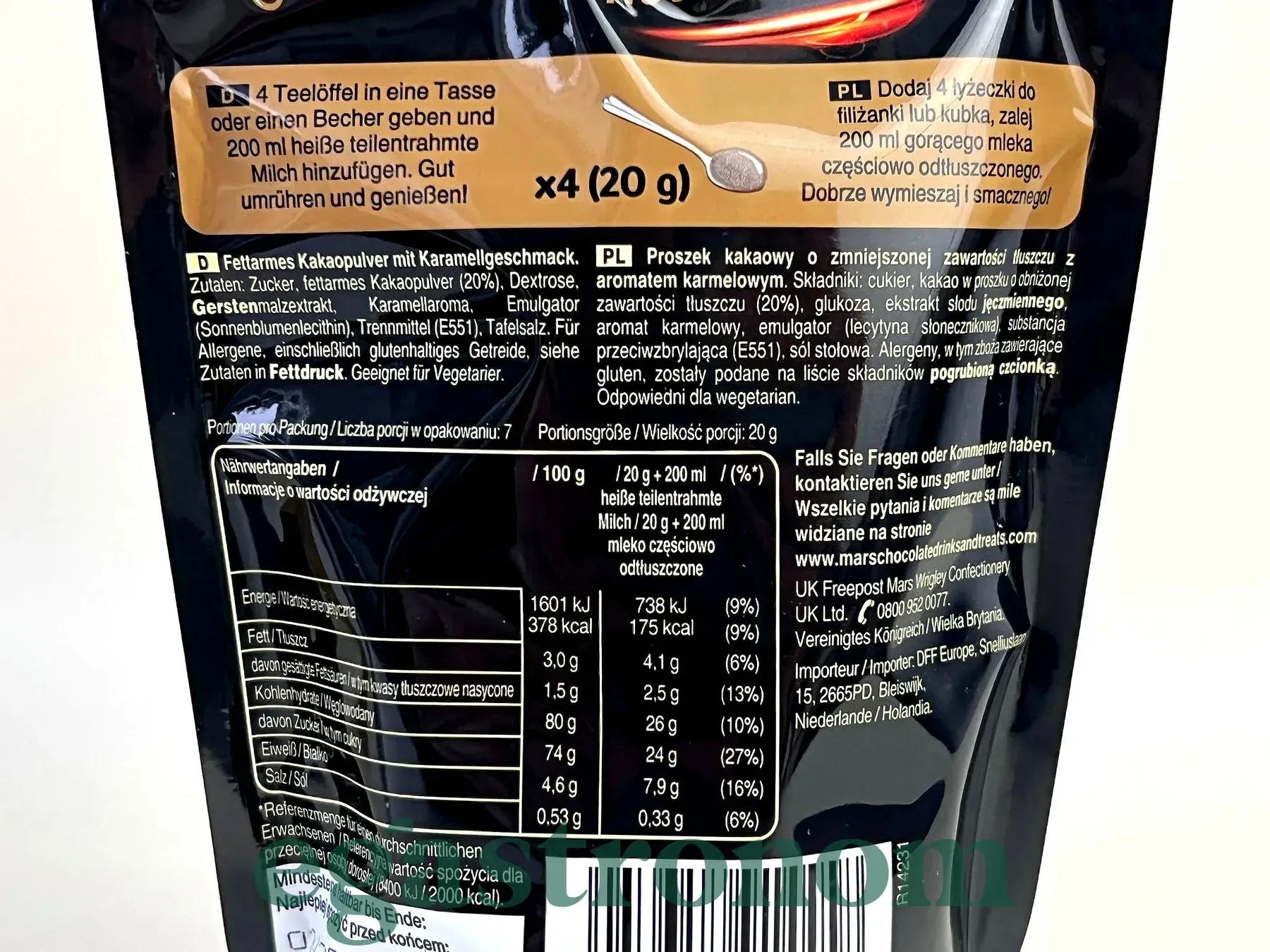 Гарячий шоколад зі смаком легендарного батончика Mars — насичений, м’яко-карамельний і дуже ніжний. Розкривається найкраще з гарячим молоком, утворюючи густий оксамитовий напій, який дарує справжнє задоволення.