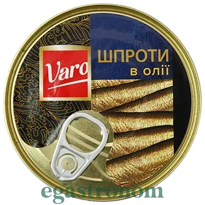 Шпроти в олії Varo - це ніжні, копчені рибки в маслі, які мають неймовірний смак дитинства і свята. Шпроти в олії можуть стати чудовою прикрасою до вашого святкового столу. Також вони підійдуть як один з інгредієнтів на бутерброд, який можна доповнити огірком і сиром, зеленню, лимоном або навіть перепелиними яйцями. ТОП запити Засіб від плям на одязі Купити цукерки в україні Ціна сиру маскарпоне Сир з пліснявою брі Європейські продукти Чіпси ціна Купити шампунь для волосся