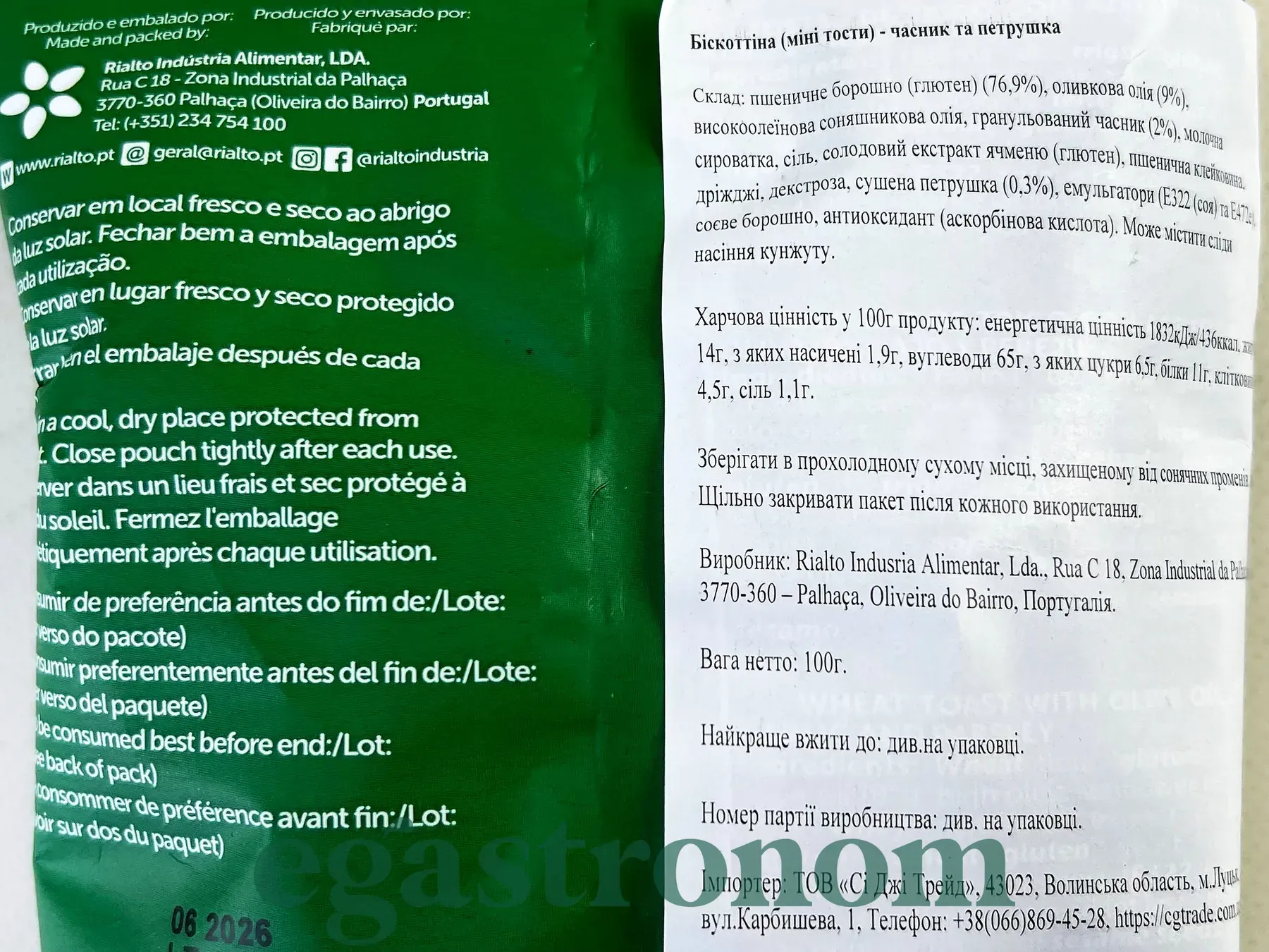 Біскоттіна (міні тости) часник та петрушка Ріалто Rialto 100g 12шт/ящ