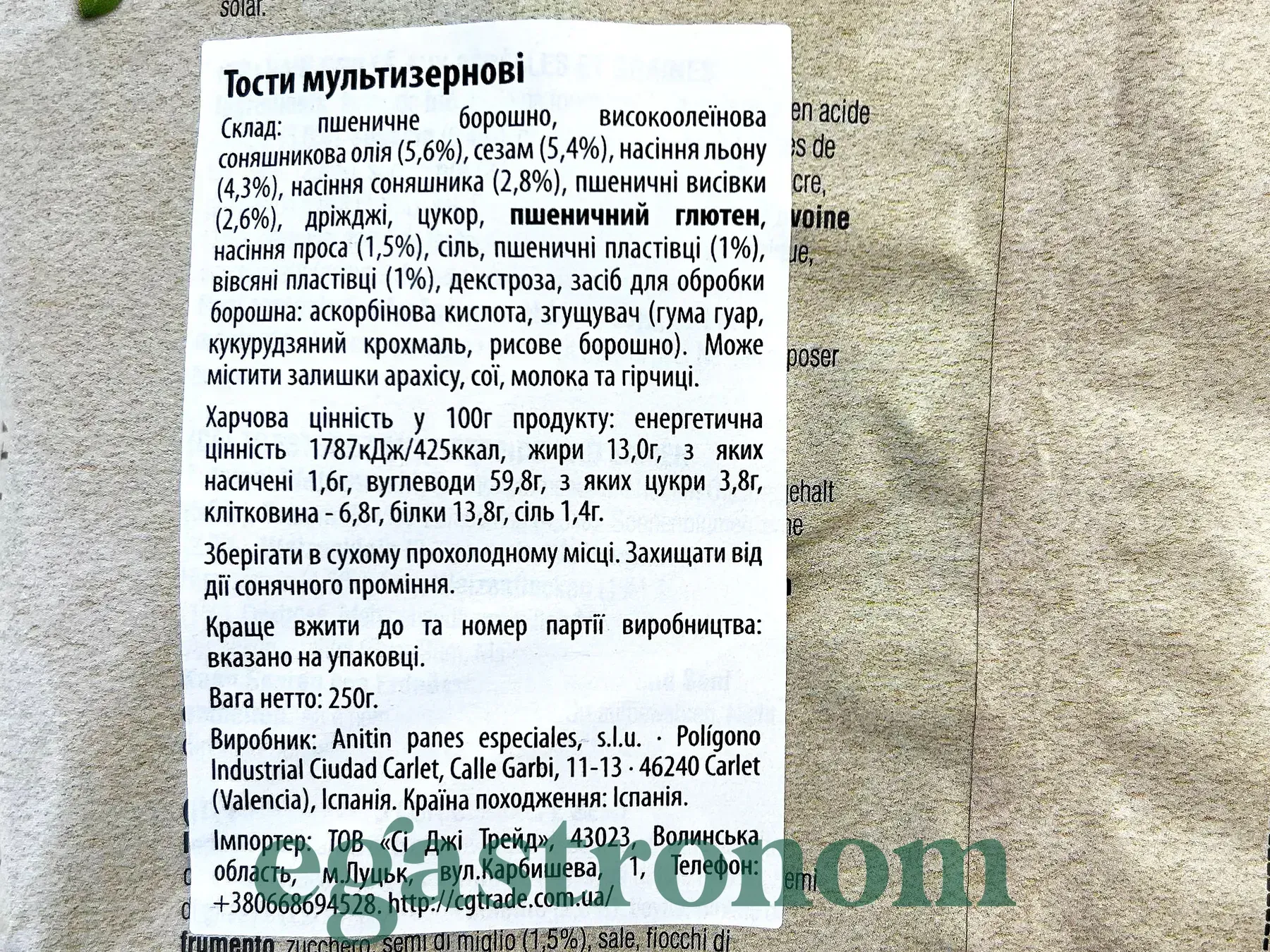 Хрусткі мультизернові тости, випечені з пшеничного борошна з додаванням насіння льону, кунжуту, соняшника та злакових пластівців. Джерело клітковини та енергії — вони чудово смакують із сиром, авокадо чи улюбленими намазками. Ідеальний вибір для тих, хто цінує користь і смак у кожному шматочку.