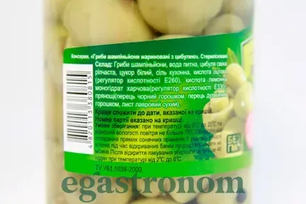 Мариновані печериці торгового бренду Rio (Ріо) стануть прекрасною закускою або пікантним компонентом в складі салату або основного блюда. Гриби представлені в скляній прозорій банці з кришкою, що закручується, номінальною вагою 420 г. Всі грибочки цілі, рівні і привабливі. Продукт має пряний досить приємний аромат, без стороннього відтінку. Смак грибів збалансований і передає повнотілий відтінок свіжого продукту. Мариновані печериці Rio можна вживати як самостійний продукт, а також додавати в салати і холодні закуски. Суміш не містить штучні харчові добавки. Виробник використовує виключно натуральні прянощі при готуванні продукту. У складі маринованих печериць компанії Rio немає штучних харчових добавок, тільки гриби, цибуля, вода, цукор, оцтова кислота, насіння гірчиці, чорний перець, лавровий лист, перець духмяний і сіль. ТОП запити Ціна на сухофрукти Сир брі ціна Ціна вершкового масла Купити соки Засоби особистої гігієни Пральний засіб Ціна пармезану