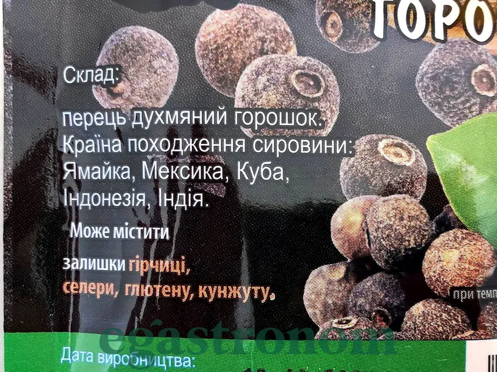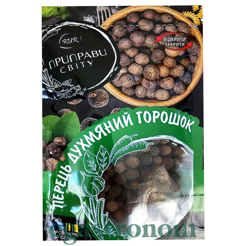 Духмяний перець в упаковці дой-пак. Використовується для ароматизації страв з м'яса, овочів і супів. Кількість на палеті: 2800 шт.