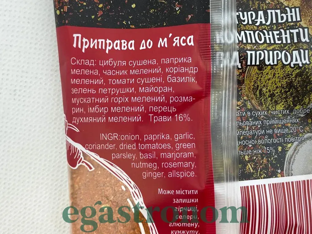 Приправа до м'яса від "Приправи Світу" - це суміш спецій і трав, ретельно підібрана для того, щоб надати вашим м'ясним стравам багатий смак і аромат. Ця приправа призначена для використання з будь-яким видом м'яса - від яловичини і свинини до курки і індички. Приправа до м'яса "Приправи Світу" може бути використана для маринування, посолу, приправлення перед смаженням або готуванням на грилі, а також для використання у соусах і маринадах. Вона допомагає підкреслити найкращі смакові якості м'яса і зробити ваші страви особливими і запам'ятовуваними. Завдяки своєму багатому смаку і аромату, приправа до м'яса "Приправи Світу" стане незамінним додатком до вашої кухні, роблячи ваші м'ясні страви ще смачнішими та апетитнішими. ТОП запити Ціни на чай Гострий соус Замовити капсули для прання Продукти з молока Засоби для кухні Плямовивідники Гель для прання