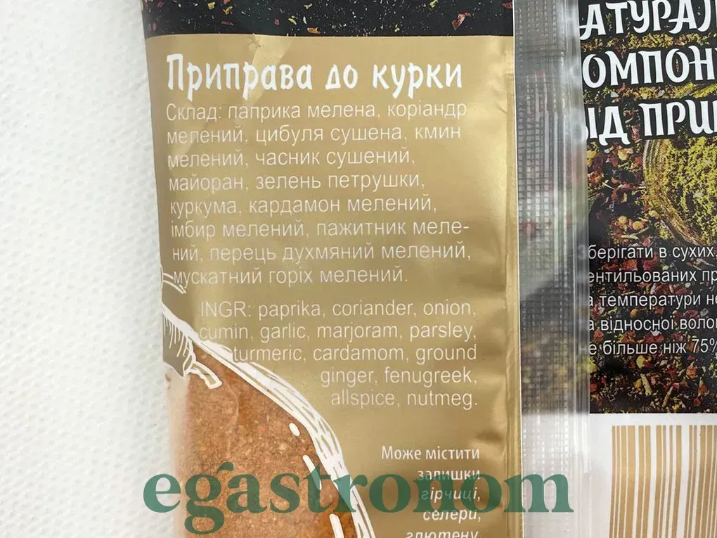 Приправа до курки від "Приправи Світу" - це ідеально збалансована суміш спецій і трав, призначена для підкреслення смаку та аромату курячих страв. Ця приправа ретельно підібрана, щоб надати вашим стравам з курки багатий смак і виразний аромат. Приправа до курки "Приправи Світу" може бути використана для маринування, посолу або приправлення курячих страв перед приготуванням. Вона допомагає підкреслити найкращі смакові якості курки і зробити ваші страви особливо смачними і апетитними. Ця приправа ідеально підходить для приготування різних видів курячих страв, від смаженої або запеченої курки до курячих страв в соусах чи супах. Вона також може бути використана як додаток до курячих салатів або паст. Завдяки своєму багатому смаку і аромату, приправа до курки "Приправи Світу" стане незамінним додатком до вашої кухні, додаючи вашим курячим стравам неповторний смак і аромат.