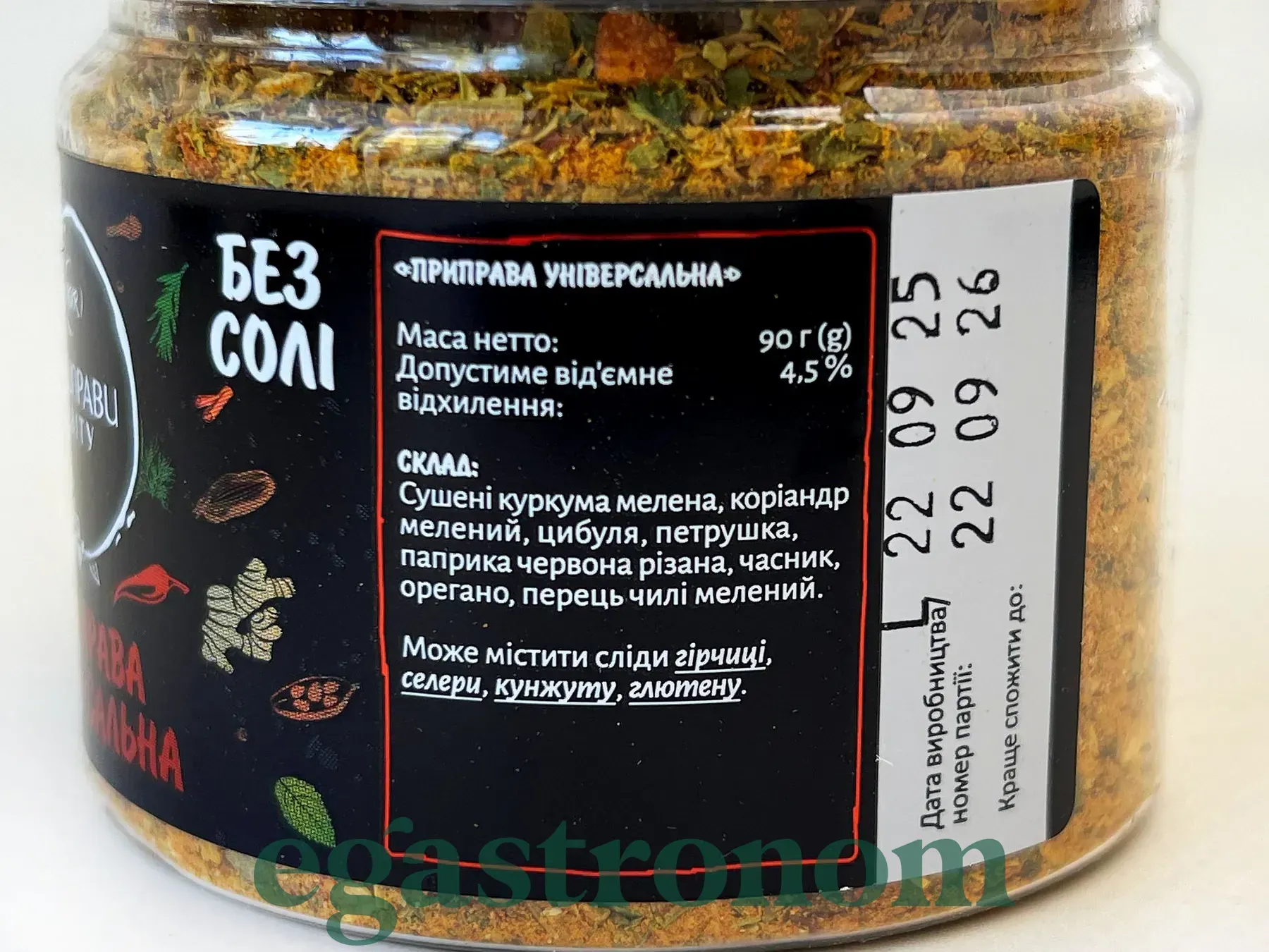 Багатофункціональна ароматна суміш спецій і трав — підходить до будь-яких страв: м’яса, риби, овочів і супів. Натуральний смак без солі.