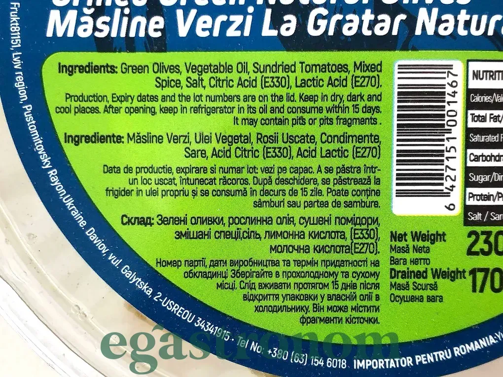 Зелені оливки, приготовані на грилі , в пряному рослинному маслі з часником , перцем , італійськими травами.