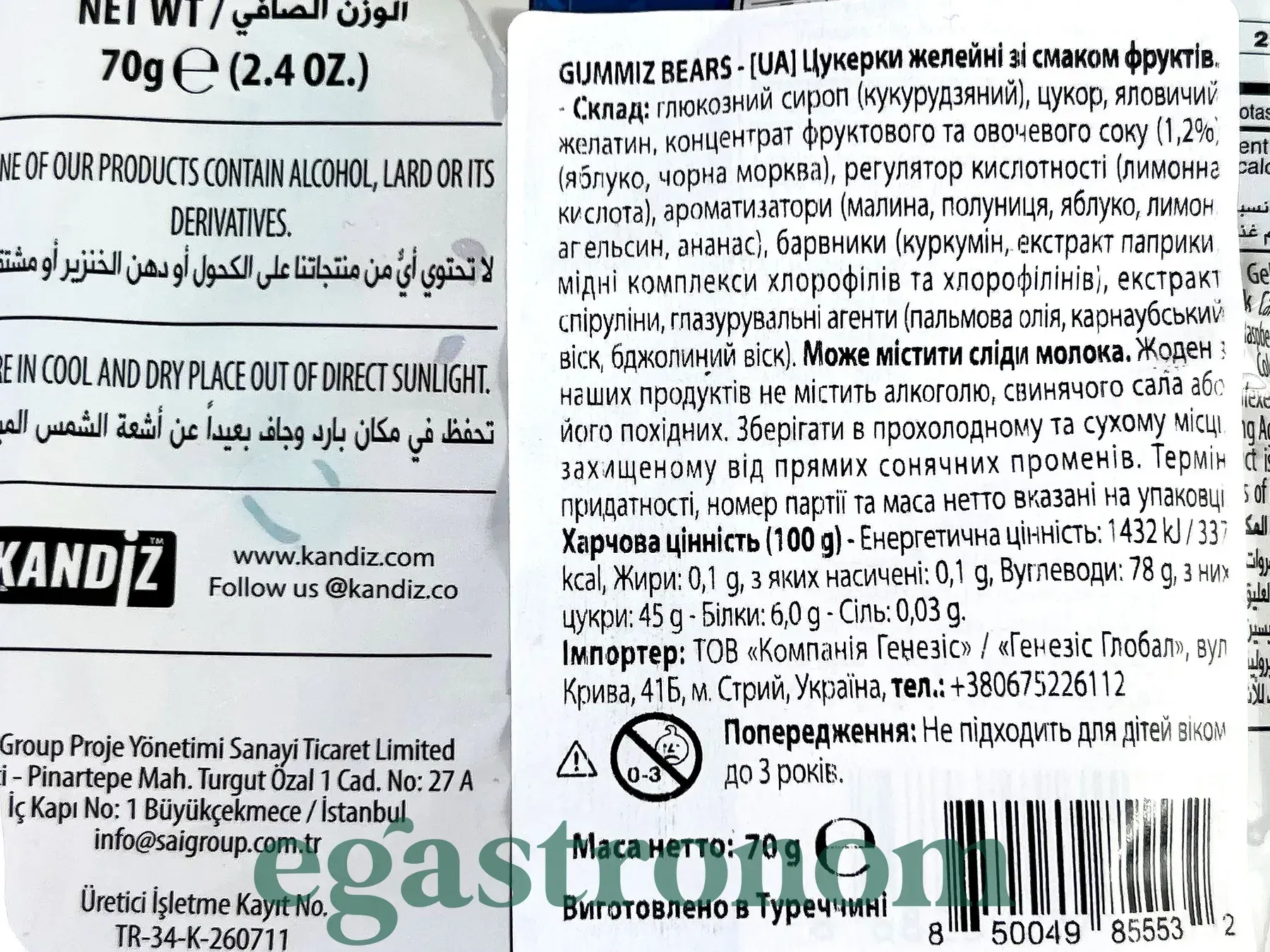 Желейки ведмедики Щенячий Патруль Кандіз Kandiz Paw Patrol 70g 12шт/пач 8пач/ящ