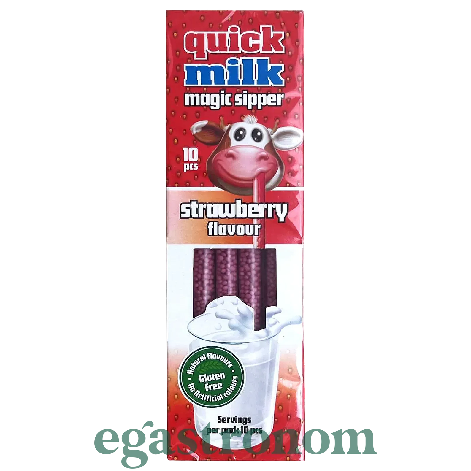 Соломинки для молока Quick Milk Magic Sipper Strawberry - солодкий полуничний смак, який робить молоко улюбленим напоєм дітей. Просте рішення для смачного перекусу вдома або в дорозі.