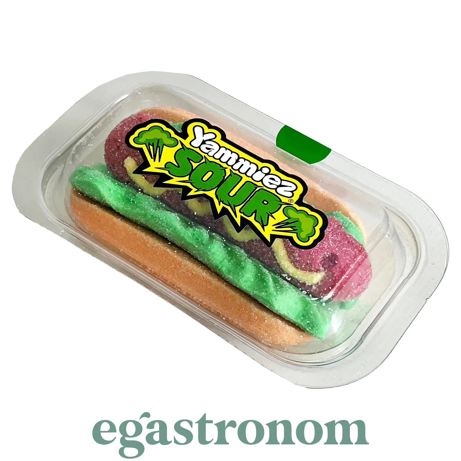 Оригінальна маршмелоу-цукерка у формі хот-дога з яскравими кольоровими шарами та кисло-солодким смаком. М’яка, повітряна текстура поєднується з легкою кислинкою та цукровою обсипкою. Ідеально підходить для подарункових наборів та веселих snack-пауз.