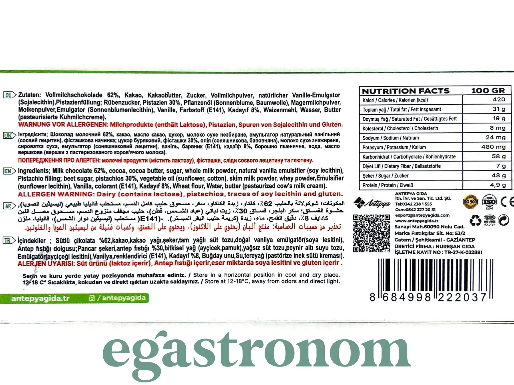 Шоколад Дубайський з фісташкою Антепія Antepya 95g 12шт/ящ