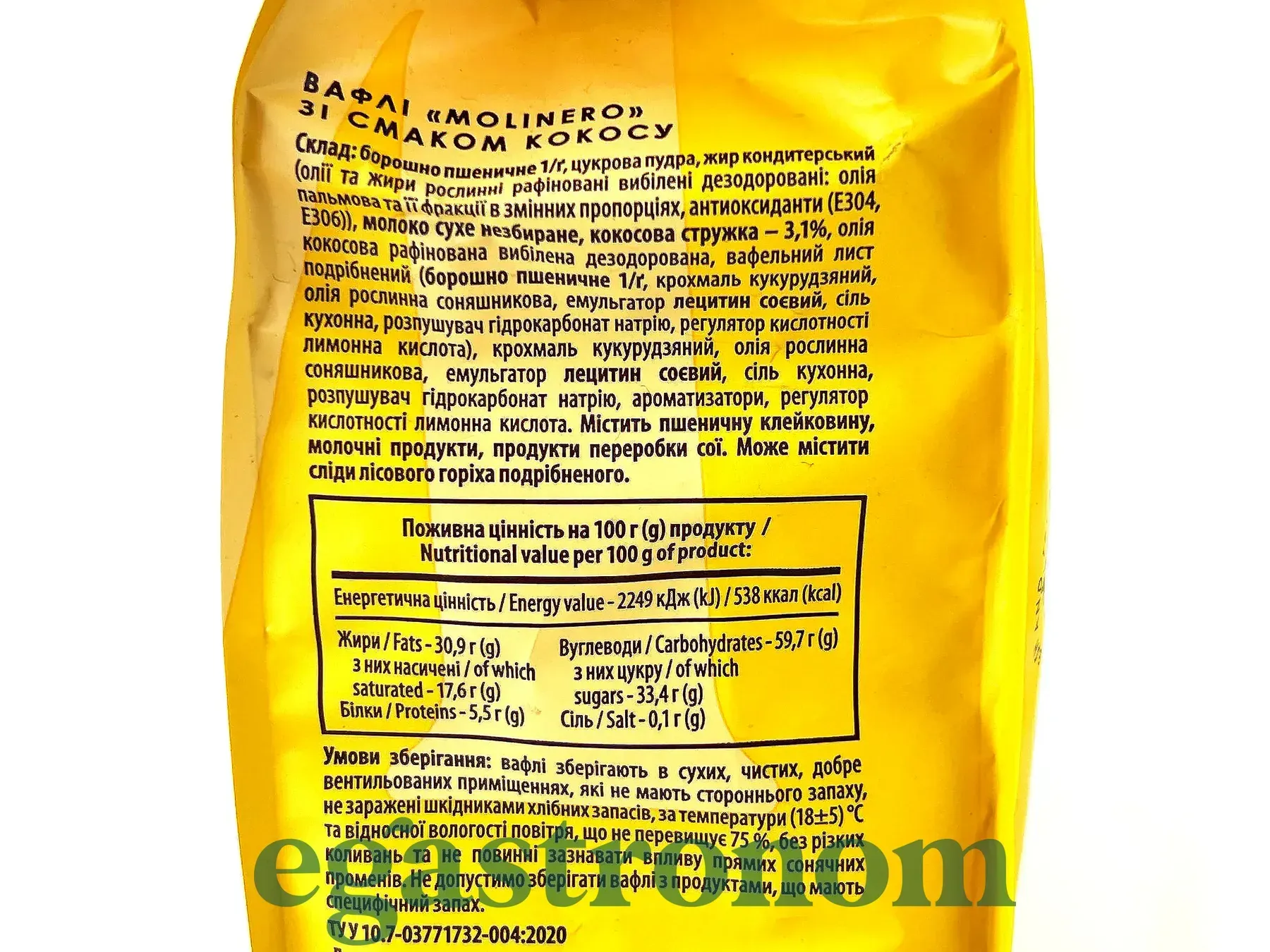 Вафлі зі смаком кокосу Молінеро Molinero 200g 10шт/ящ