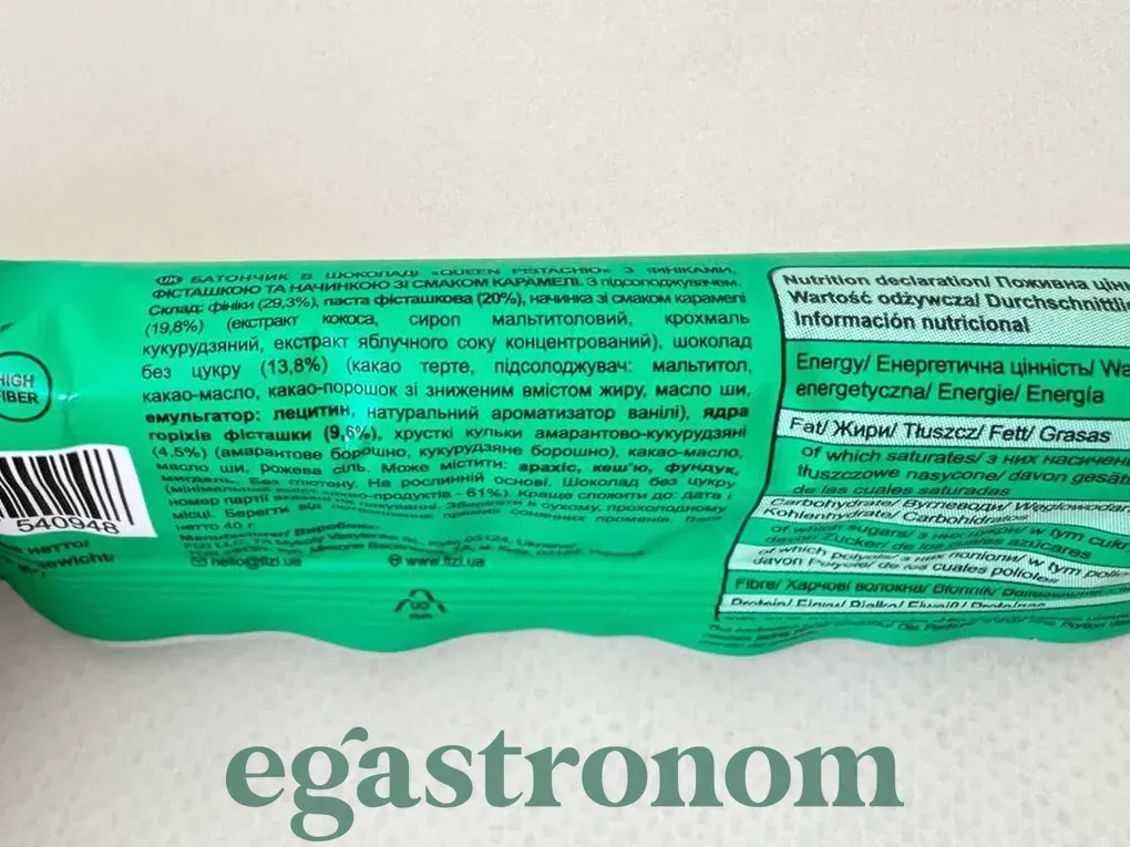 Батончик фісташка (без цукру) Фізі Fizi gueen pistachio 40g 10шт/ящ. Зображення №2