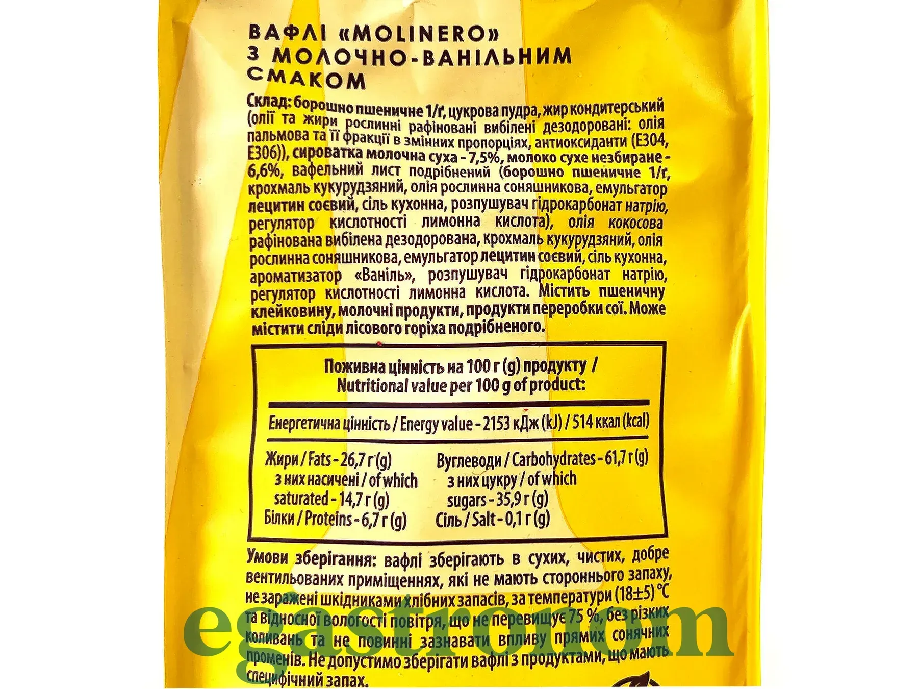 Вафлі з молочно-ванільним смаком Молінеро Molinero 200g 10шт/ящ