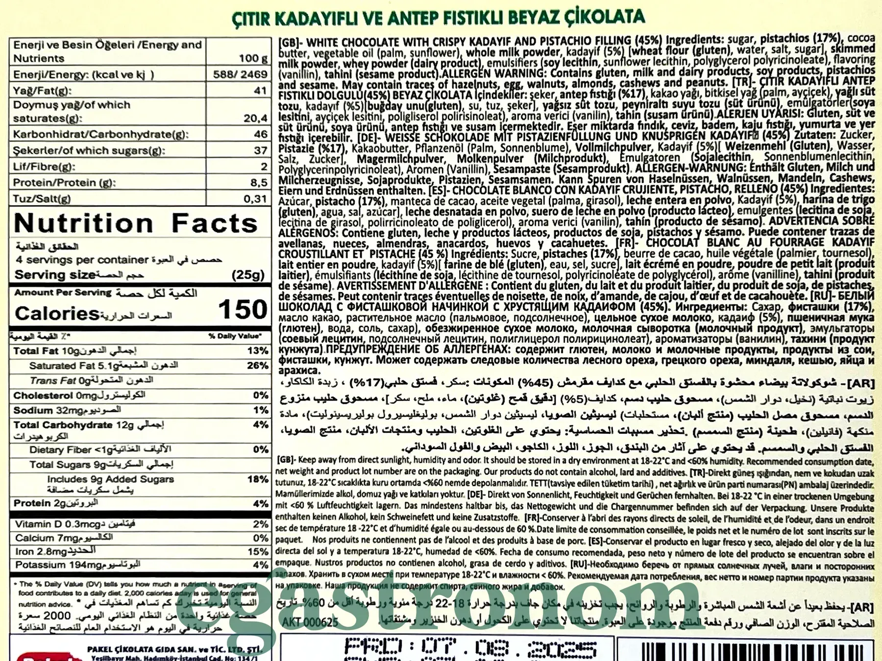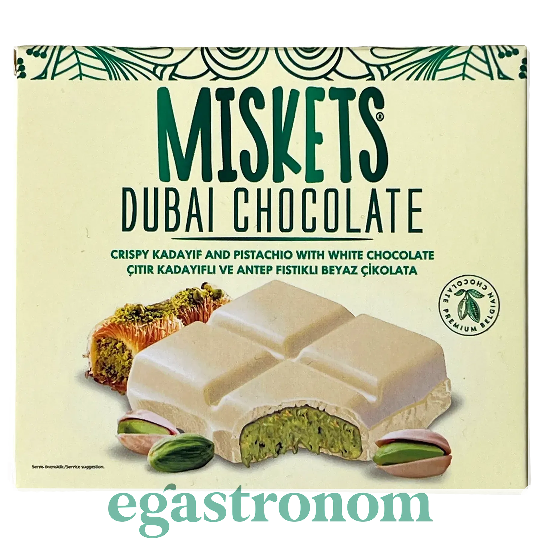 Шоколад Дубайський білий з фісташковою начинкою Міскетс Miskets 100g 12шт/пач 6пач/ящ