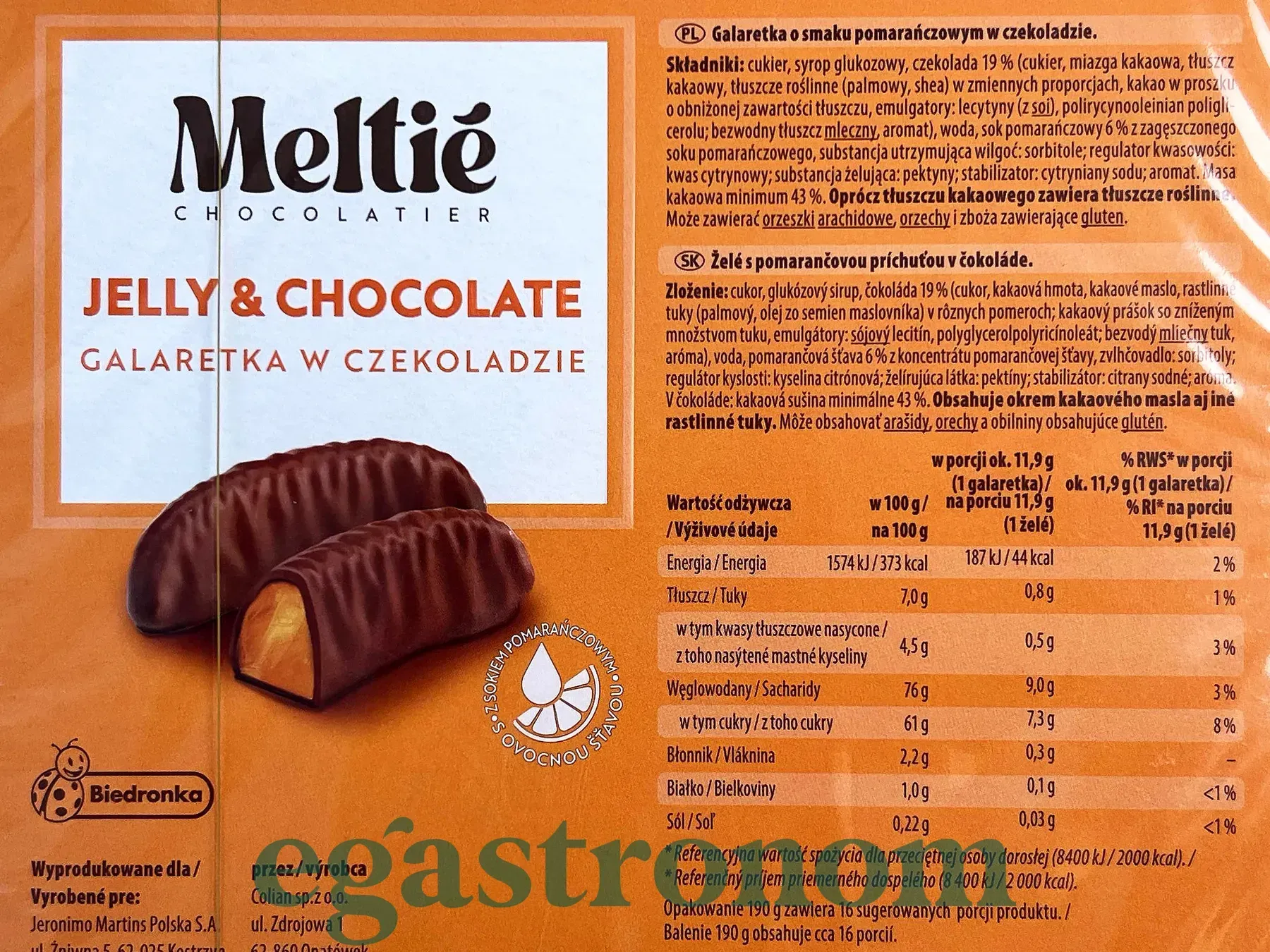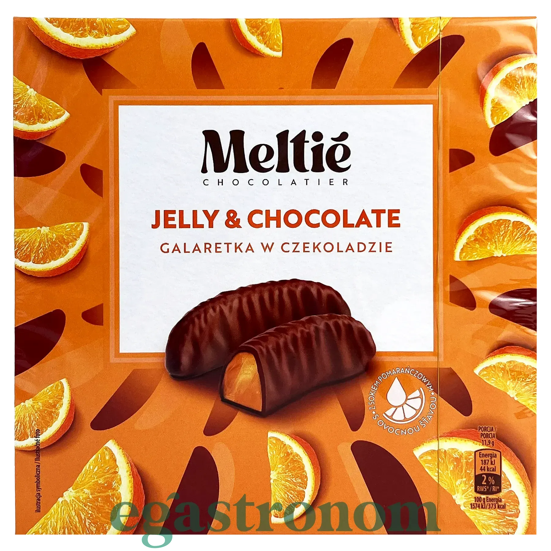 Ніжна фруктова желейка з яскравим апельсиновим смаком, вкрита шаром ароматного чорного шоколаду. Поєднання легкої кислинки цитруса та насиченого шоколаду створює ідеальний баланс для чаю, кави або солодкої паузи протягом дня.