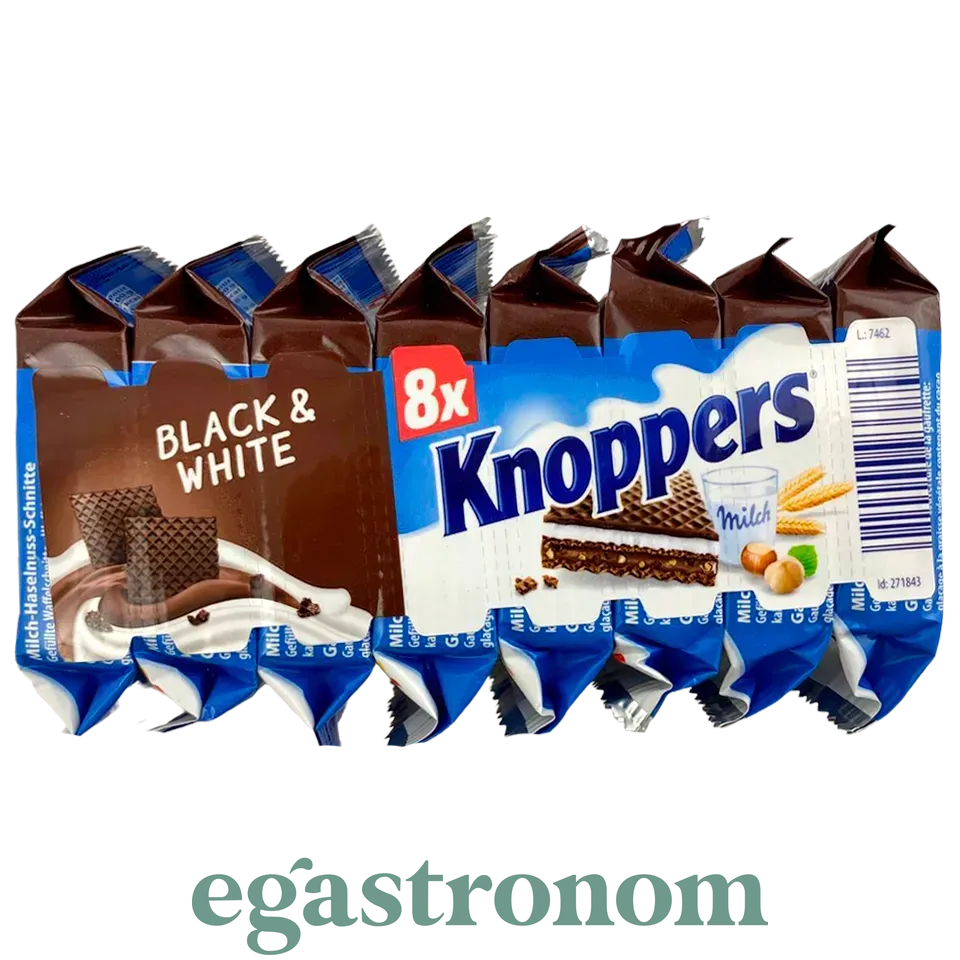 Вафлі з горіховим кремом чорно білий Кноперс Knoppers 8*25g 16пач/ящ