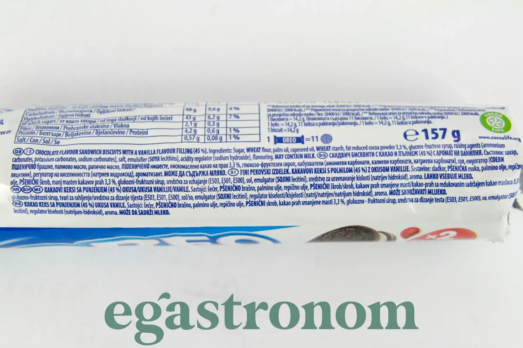 Легендарне печиво Oreo, що складається з двох шоколадно-цукрових чорних коржиків-дисків, з ніжним ванільним кремом посередині. Oreo думає про кожного споживача і спеціально для найзапекліших ласунів випустила печиво, в якому вдвічі більше крему! Вдвічі більше крему - вдвічі більше задоволення.
