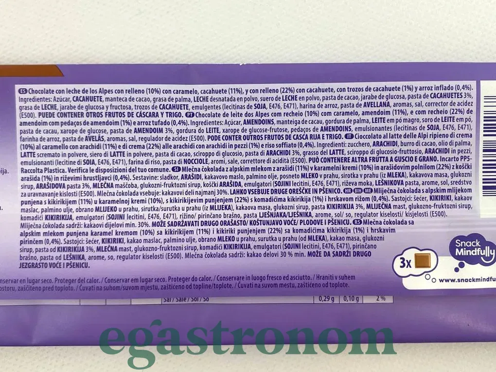 Milka Peanut Caramel дуже смачна, ніжна і залишає чудовий арахисово-карамельний післясмак. Покритий альпійським молочним шоколадом з арахісом (11%), всередині знаходиться вершкова карамель (10%), начинка -- арахісовий крем (22%) з подрібненим арахісом (1%) і хрустким рисом.