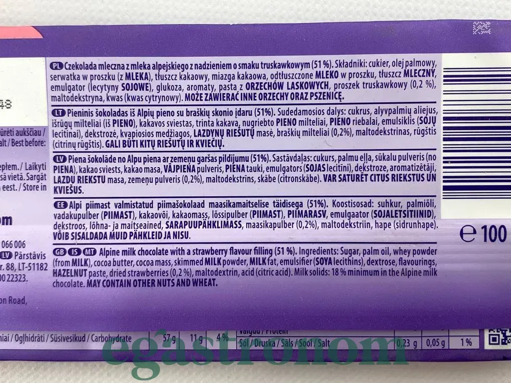 Швейцарський шоколад Мілка з полуничним йогуртом - це висока якість і відмінний смак шоколаду з ароматною начинкою. Шоколад Мілка на 100% складається з альпійського молока, який тане в роті. Поєднання ароматного полуничного йогурту і бездоганного молочного шоколаду дарує воістину неземні відчуття! Спробуйте і Ви! ТОП запити Сухі сніданки купити Варення Купити сир чеддер Засіб для чищення салону автомобіля Європейські продукти Печиво купити ціна Пакети для сміття ціна