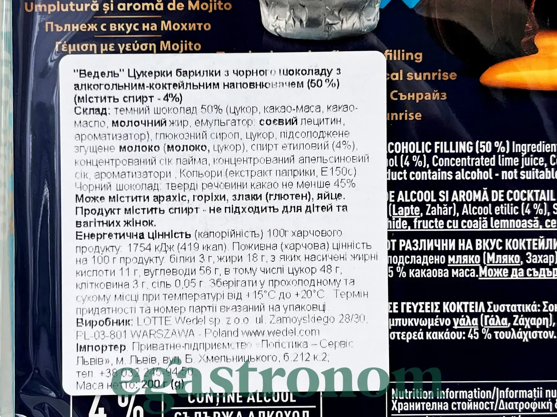 Цукерки шоколадні з коктельним смаком щасливі бочки Е. Ведель E. Wedel happy сocktail 200g 10шт/ящ