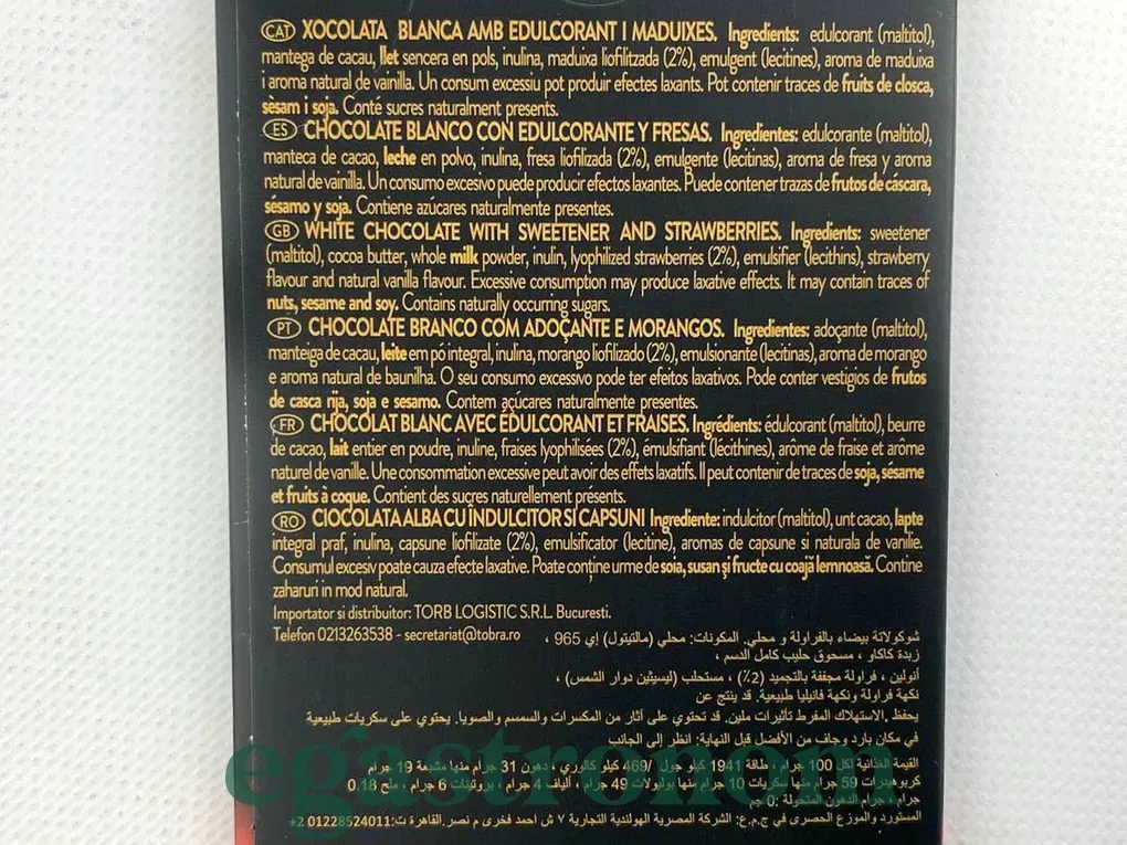 Цей білий шоколад з полуницею - справжня розкіш для смаку та аромату. Він представляє собою ніжний білий шоколад, що тане у роті, з чудовими кусочками полуниці. Цей шоколад виготовлений без використання цукру, що робить його ідеальним вибором для тих, хто обмежує споживання цукру в щоденному раціоні. Кожен шматочок цього шоколаду наповнений свіжим і ароматним смаком полуниці, який чудово поєднується з ніжними нотками білого шоколаду. ТОП запити Магазин з побутовою хімією Тверді сири Купити порошок Заправки до салатів Напівтверді сири Чистящий засіб Купити вершкове масло