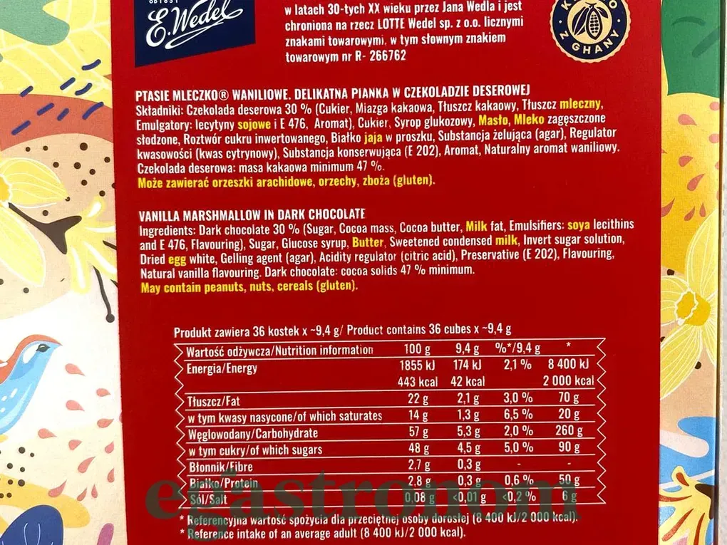 Цукерки пташине молоко зі смаком ванілі Е. Ведель E. Wedel vanilla flavour 340g 18шт/ящ. Зображення №2