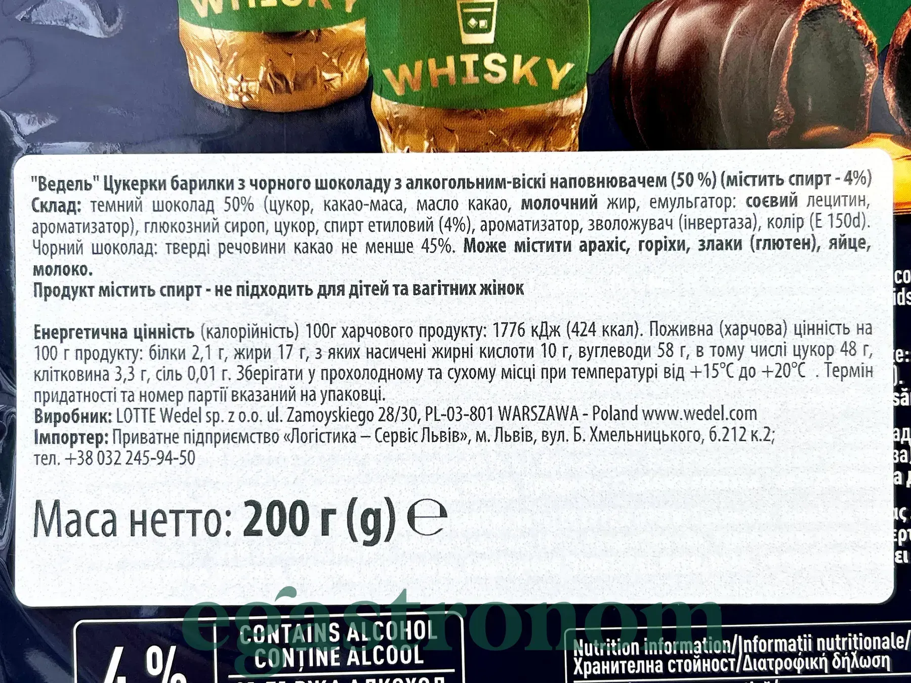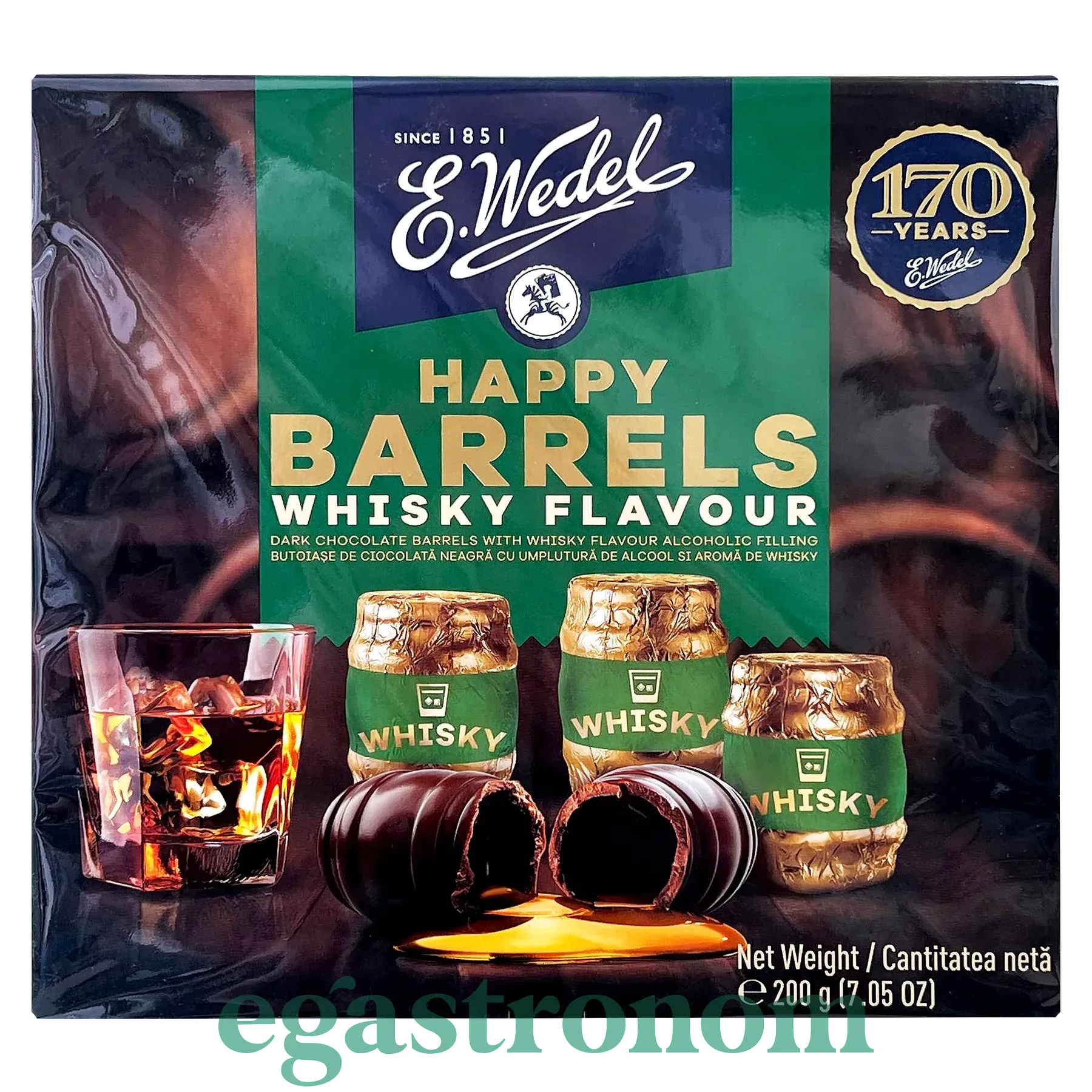 Цукерки шоколадні з смаком віскі щасливі бочки Е. Ведель E. Wedel happy whisky 200g 10шт/ящ